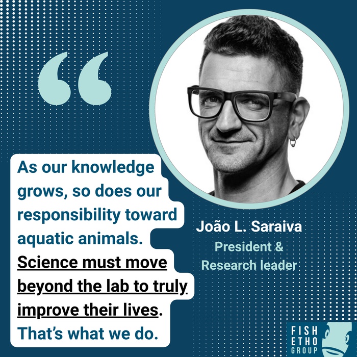 💬 “At FishEthoGroup, we strive to connect all these aspects: from fundamental knowledge to applied research, and then translating this understanding into concrete actions — both at the industry level and at the policy level,” explains João.